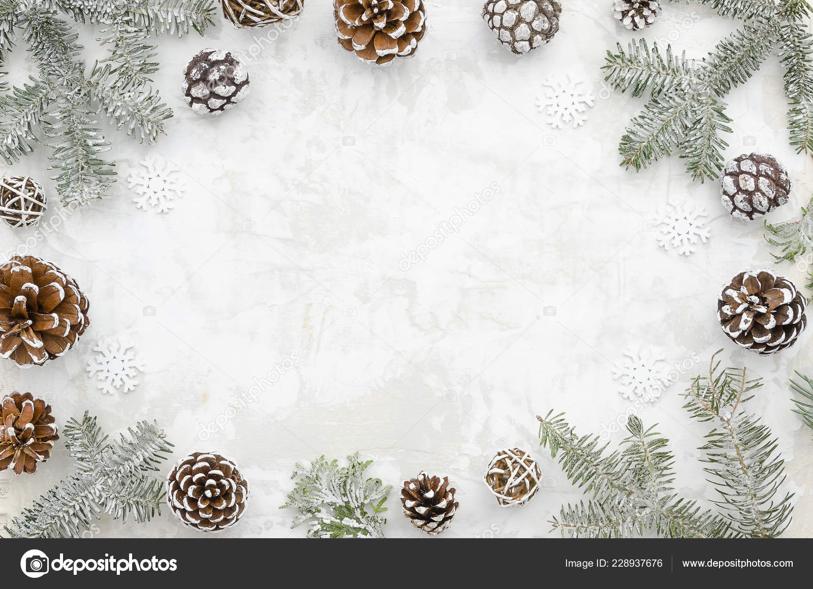 Christmas Frame Made Of Cones And Fir Branches On Winter Background With Free Space For Lettering Flat Lay Stock Photo Image By C Woodpencil